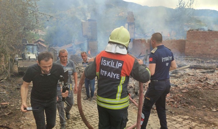 Çorum’un İskilip ilçesinde çıkan yangında 3 ev ve 6 samanlık kullanılamaz hale geldi.