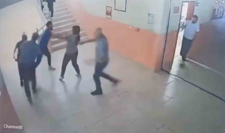 Öte yandan olay anı ise güvenlik kamerasına yansıdı. Görüntülerde, şahısların okul müdürü ve görevliyi darp ettiği görülüyor.