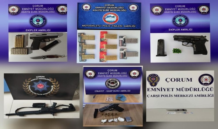 Çorum’da polis ve jandarma ekipleri, son bir haftada gerçekleştirdikleri denetimlerde 48 bin 609 kişinin GBT’si sorgulandı, çeşitli suçlardan aranan 26 kişi de cezaevine gönderildi ve çok sayıda silah ile uyuşturucu madde ele geçirildi.