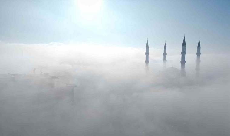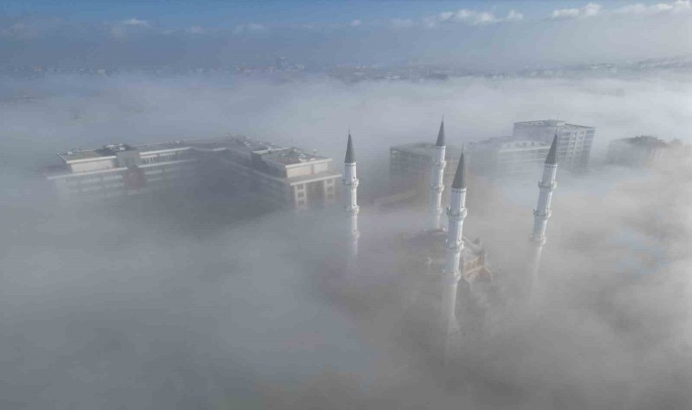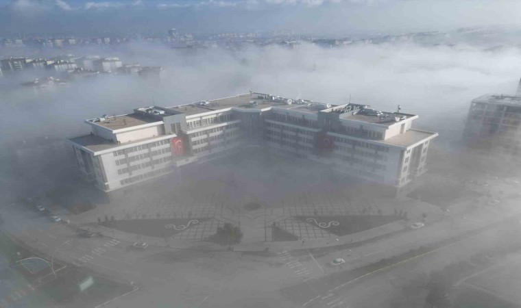 İl genelinde hakim olan sis havadan fotoğraflandı. Fotoğraflarda Akşemseddin Camii ve Çorum Belediyesi hizmet binası sis bulutlarının arasında kayboldu.
