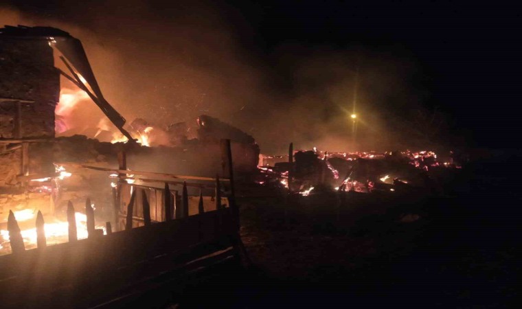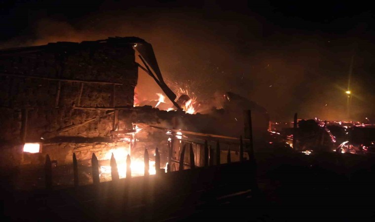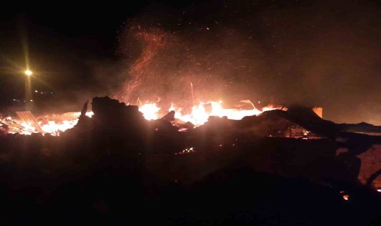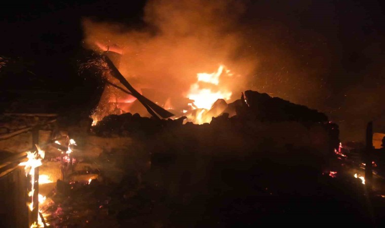 Çorum’da çıkan yangında yaklaşık 55 koyun telef olurken, 1 ev ile ahır yandı.