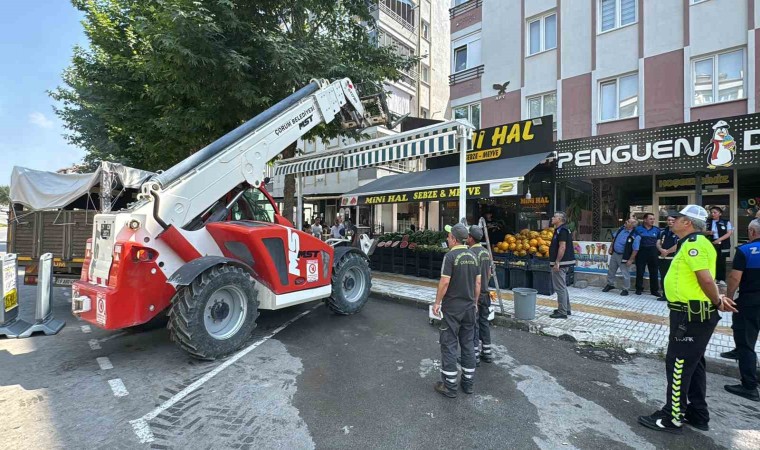 Çorum’da kaldırım işgali yapan, araç ve yaya güvenliğini tehlikeye sokan işyerlerine yönelik çalışmalarını sürdüren Çorum Belediyesi Zabıta Müdürlüğü ekipleri, uyarıları dikkate almayan işyerlerine yönelik cezai işlem uyguluyor.
