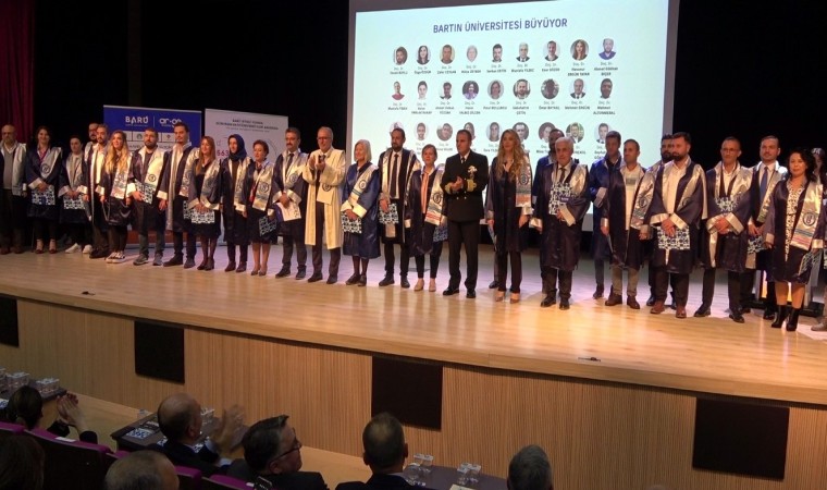 Bartın Üniversitesi’nde düzenlenen törenle 2023-2024 akademik yıl açılışı düzenlendi. Törende son 1 yılda profesör, doçent gibi unvanları almaya hak kazanan akademisyenler, cübbe giyerek sertifikalarını aldı.