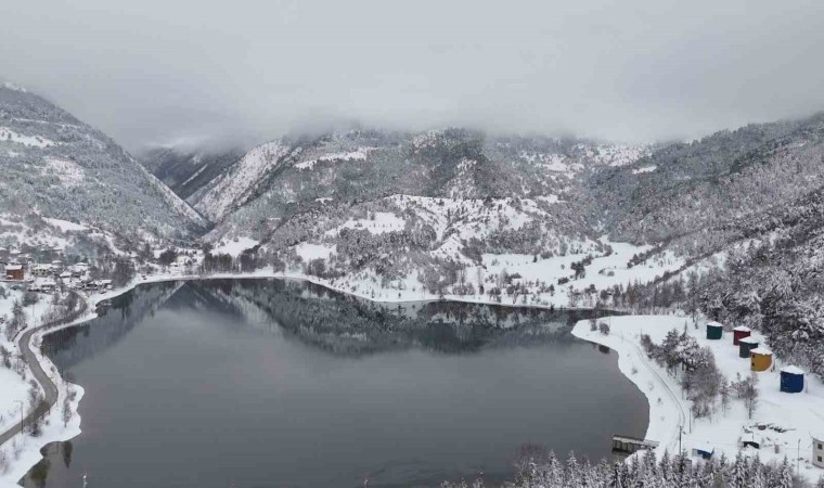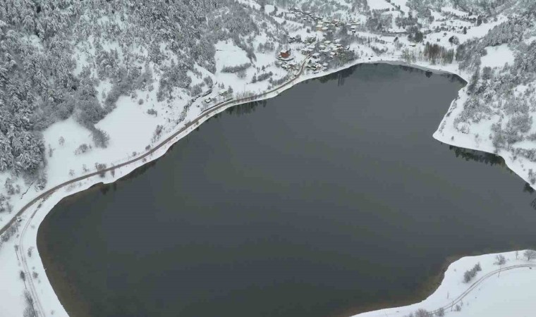 Bolu’nun doğa harikası mekanlarından olan Çubuk Gölü’nde kar yağışının ardından kartpostallık görüntüler ortaya çıktı.