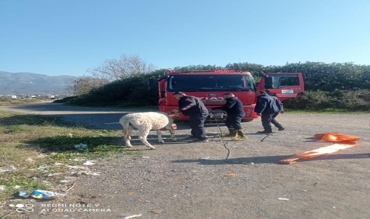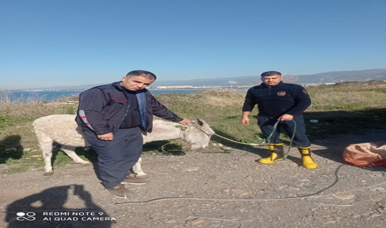Hatay’ın Payas ilçesinde çukura düşen eşek, itfaiye ekipleri tarafından kurtarıldı.