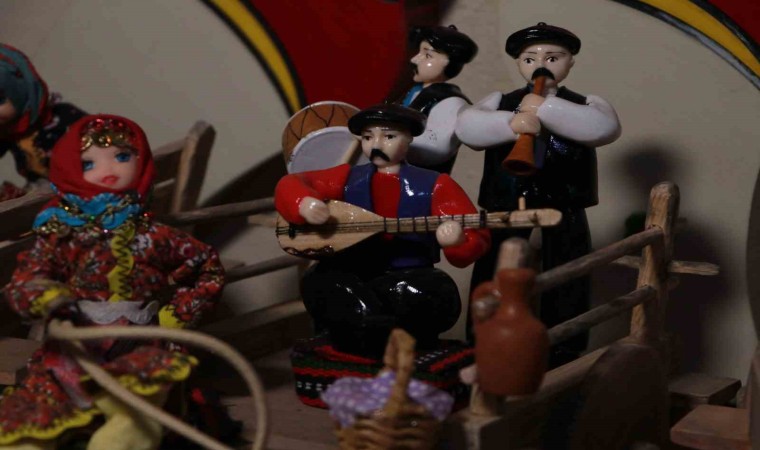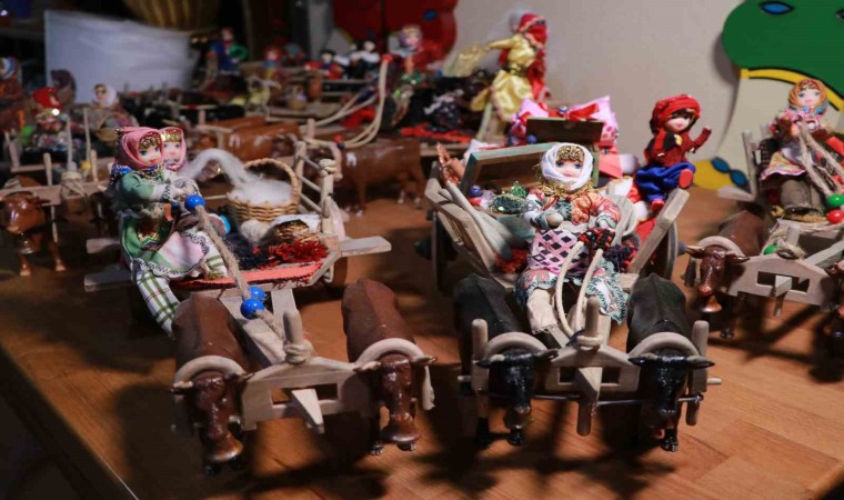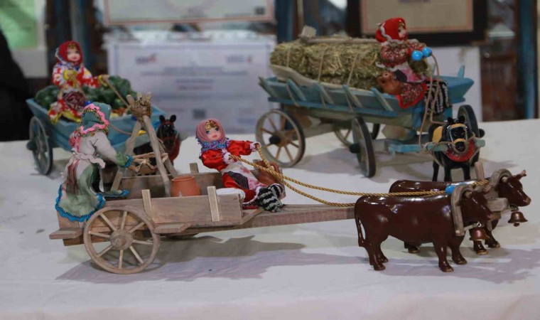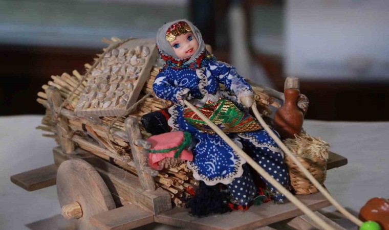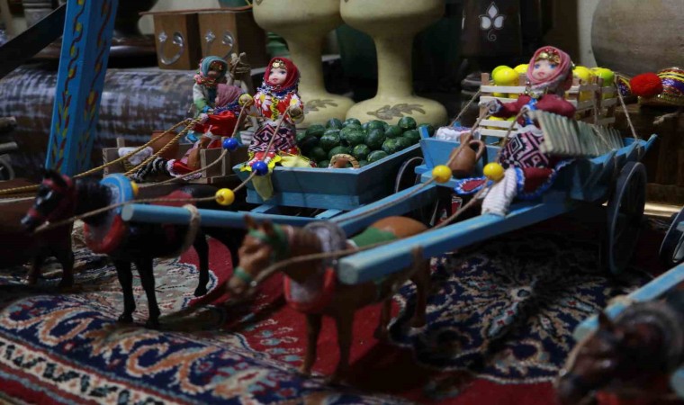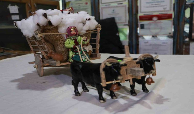 Erdoğan, yaklaşık 4 sene önce Çukurova’nın tarihini ahşaptan anlatmak istedi ve ahşaptan yaklaşık 50 çeşit el emeği göz nuru ürün hazırladı. At arabasında bebeğiyle tarlaya giden kadından, at arabasında gelin almaya, narenciye ve pamuk yüklemeye giden işçilerden saman ve odun taşınmaya kadar ahşaplarda birçok tema işlendi.
