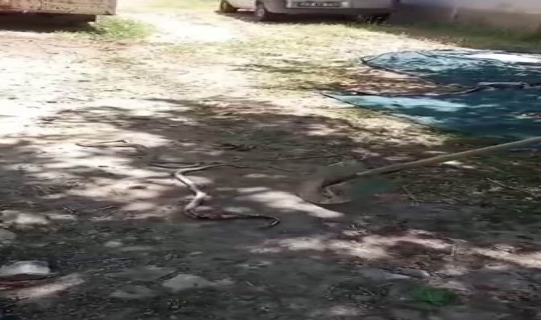 Telaşlanan Sürgeç, yanında bulunan kürekle yılanları etkisiz hale getirdi.