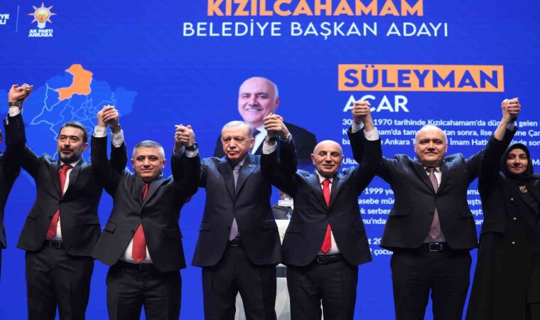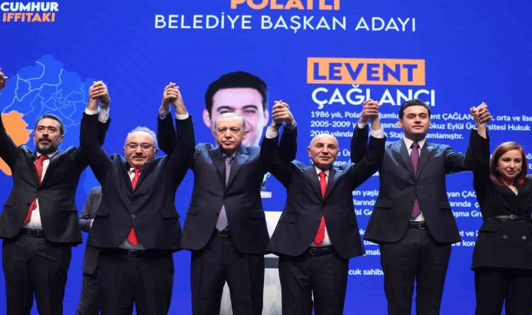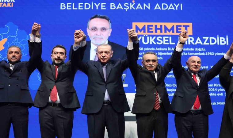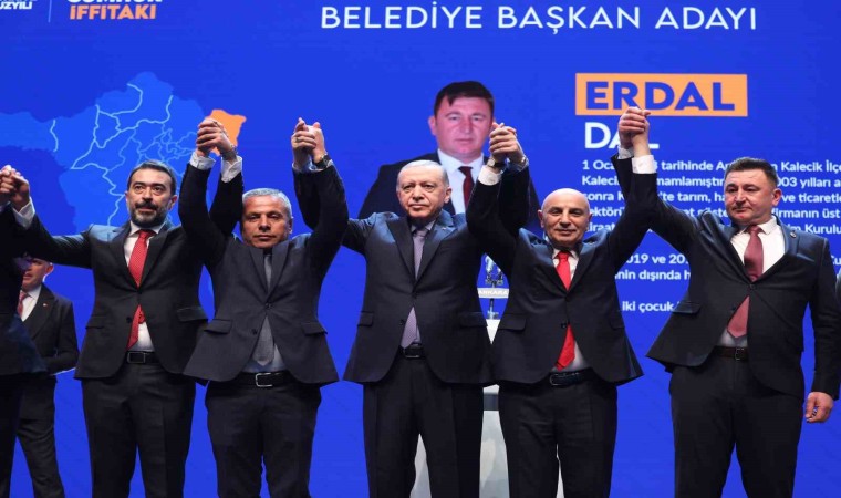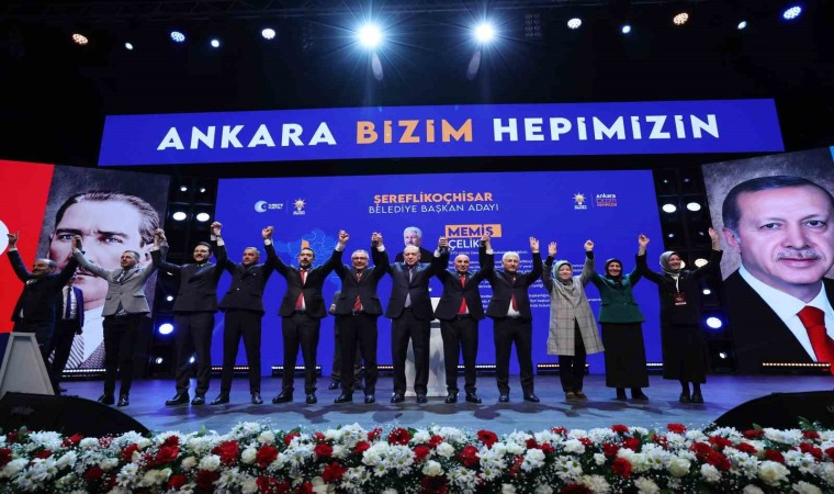 Cumhurbaşkanı Erdoğan, MHP’nin destekleneceği ilçelerin adaylarını da sahneye çağırarak tanıttı. MHP’den Ayaş’ta Mehmet Kirazdibi, Etimesgut’ta Enver Demirel, Gölbaşı’nda Ramazan Şimşek, Kalecik’te Erdal Dal, Polatlı’da ise Levent Çağlancı belediye başkanlığına aday gösterildi.