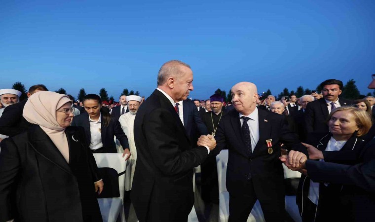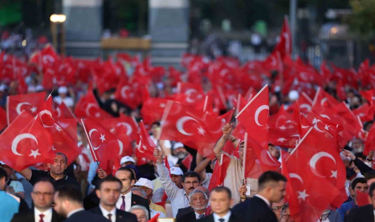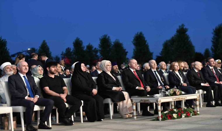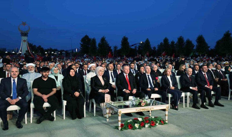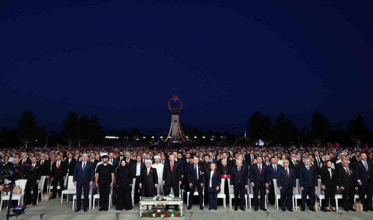 “Bu muazzam birlik ve beraberlik için dosta güven düşmana korku veren bu dik duruşunuz için her birinize ayrı ayrı teşekkür ediyorum” diyen Cumhurbaşkanı Erdoğan, ”Rabbimiz, mukaddes kitabımız Kur’an-ı Kerim’de ’Allah yolunda öldürülenlere ölüler demeyiniz, zira onlar diridirler, ancak siz bunu bilemezsiniz’ buyuruyor. Manevi bakımdan böyle şerefli bir makama ulaşmak, şehadetle müşerref olmak dünyada her kula nasip olmaz” diye konuştu.