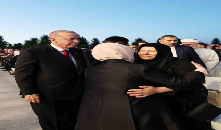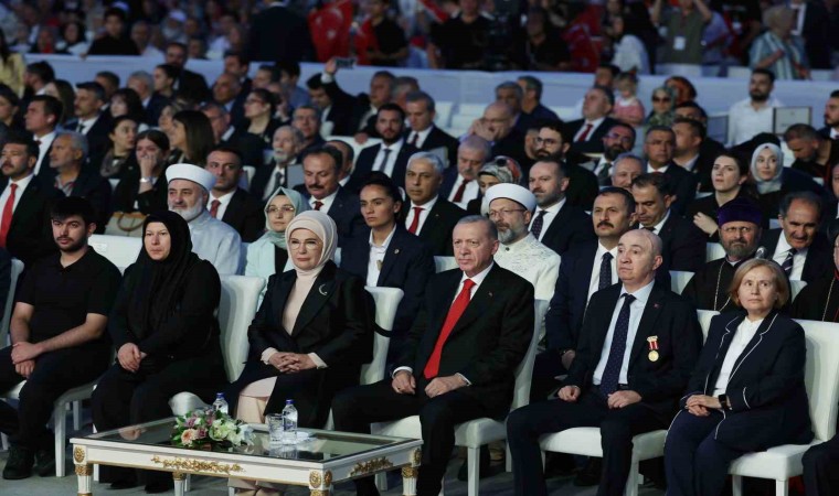 Programa Cumhurbaşkanı Erdoğan’ın eşi Emine Erdoğan, Cumhurbaşkanı Yardımcısı Cevdet Yılmaz, TBMM Başkanı Numan Kurtulmuş, MHP Genel Başkanı Devlet Bahçeli, eski TBMM Başkanı İsmail Kahraman, BBP Genel Başkanı Mustafa Destici, DSP Genel Başkanı Önder Aksakal, Hür Dava Partisi (HÜDA PAR) Genel Başkanı Zekeriya Yapıcıoğlu ve eski Başbakan Binali Yıldırım da katıldı. Cumhurbaşkanı Erdoğan’ın yanında gazi Turgut Aslan, Emine Erdoğan’ın yanında Ömer Halis Demir’in eşi oturdu. Programda MHP Genel Başkanı Devlet Bahçeli tarafından Cumhurbaşkanı Erdoğan’a Kur’an-ı Kerim hediye edildi.