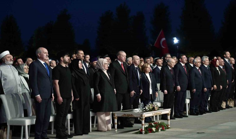 Geleceğin teminatı gençlerin 15 Temmuz’u anlamalarını, içselleştirmelerini, o gece asil milletin yazdığı eşsiz destanla gurur duymalarını arzu ettiklerini belirten Cumhurbaşkanı Erdoğan, ”Birileri rahatsız olsa da, biz şuna yürekten inanıyoruz: ’Çanakkale ruhu’ nasıl bir asır boyunca milletimize rehberlik etmişse, ’15 Temmuz ruhu’ da inşallah Türkiye Yüzyılı’nın inşasına öncülük edecektir. Cumhur İttifakı olarak bunu ayakta tutacağız ve sürdüreceğiz. Kutup yıldızlarımız olarak bizlere yol gösterecek. Yeni Türkiye, 15 Temmuz ruhunun üzerinde yükselecek” diye konuştu.
