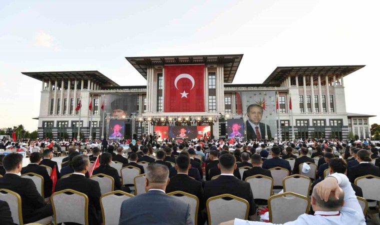 Cumhurbaşkanı Recep Tayyip Erdoğan, Cumhurbaşkanlığı Külliyesi’nde düzenlenen 15 Temmuz Demokrasi ve Milli Birlik Günü anma programında konuştu. Bugün milletin zaferinin, aziz milletin FETÖ’cü darbecilere karşı kuru elleriyle yazdığı direniş destanının 8’inci yılının idrak edildiğini ifade eden Cumhurbaşkanı Erdoğan, ”15 Temmuz kıyamının 8’inci seneyidevriyesinde bu gazi mekânda ve 81 vilayetimizin tamamında birbirimize kenetlenmiş durumdayız. Tıpkı 8 yıl önce olduğu gibi bugün de omuz omuzayız; biriz, beraberiz, genci yaşlısı, bunun yanında kadını erkeğiyle 85 milyon hepimiz tek yumruğuz. Bu aziz milletin bir ferdi ve Türkiye Cumhurbaşkanı olarak karşımdaki bu muhteşem kardeşlik tablosundan duyduğum memnuniyeti öncelikle ifade etmek istiyorum” dedi.