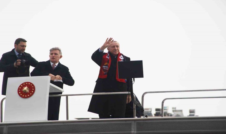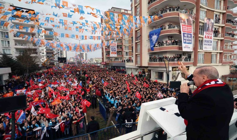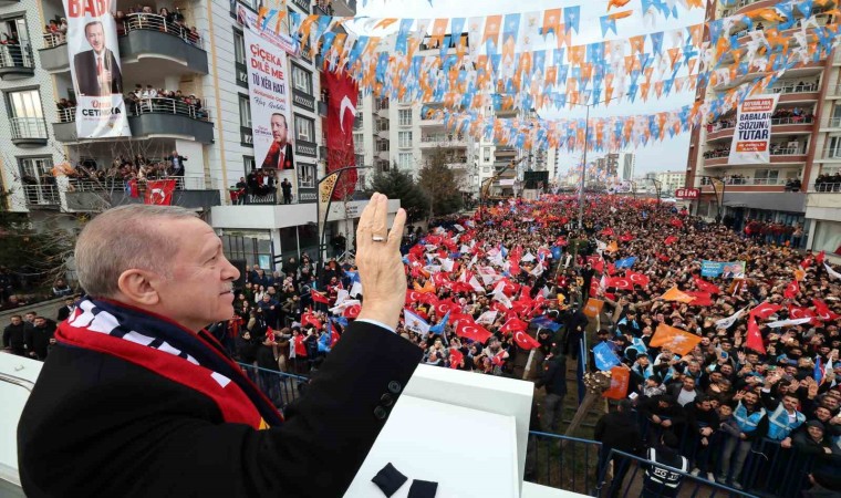Cumhurbaşkanı Erdoğan, “Sevginiz vefanız için babalar sözünü tutar, ben de bu sözü tutmanın mutluluğunu yaşıyorum. Geçen sene söz vermiştim, ilk fırsatta Kahta’nın misafiri olacağım demiştim, nasip bugüneymiş. Kahtalı kardeşlerime seçimlerdeki güçlü destekleri için şükranlarımı sunuyorum. Önceki seçimlerde rekor oy oranıyla bizleri bağrınıza bastınız. İnşallah 31 Mart seçimlerinde Kahta bu defa sandıkları patlatacak. Bugüne kadar emanetinize halal getirmedik. Her zamankinden daha fazla çalışacağız. İstasyon talebiniz var. Talimatımı vereceğim, bu istasyon sorununu halledeceğiz. Hizmet çıtamızı yükseğe çıkartacağız. Biz bu millete efendi olmaya değil, hizmetkar olmaya geldik. Bundan bir sene önce tarihimizin en büyük doğal afetini yaşadık. 53 binden fazla canımızı toprağa verdik. Kahtalı vatandaşlarımız da bu depremden etkilendi. Rabbim deprem şehitlerimizin ruhunu şad, mekanlarını cennet eylesin. Kahta’da depremlerde 613 bina yıkıldı. Deprem alanının büyüklüğüne rağmen ilk günden itibaren depremzede vatandaşlarımıza ulaşmak için seferber olduk. Sorunlarımızı çözmeye gayret ettik. 6 Şubat’tan beri verdiğimiz mücadelemizin şahidi sizlersiniz. Afet konutlarımızın teslimine başladık. Teslim törenlerimizi gerçekleştiriyoruz. Kahta’da 700 deprem konutunu hak sahiplerine teslim ettik, hayırlı olsun. Hız kesmeden deprem konutlarının teslimine devam edeceğiz. Bizim derdimiz, gayemiz hizmettir. Başkaları hangi hesapların peşinden koşarsa koşsun. Bizim en büyük hedefimiz deprem bölgemizdir. Sanayisiyle, ticareti, tarımı, turizmiyle, güvenliğiyle ülkemizi hedeflerine ulaşmak için koşturuyoruz. Birileri acılar üzerinden siyaset yapabilir. Biz bunlardan olmadık olmayacağız. Şimdi önümüzde 31 Mart seçimleri var. Bu seçimi de başarıyla tamamladıktan sonra önümüzde 4 sene icraat dönemi olacak. Sizlerden belediye başkan adaylarımıza güçlü bir destek bekliyorum” diye konuştu.