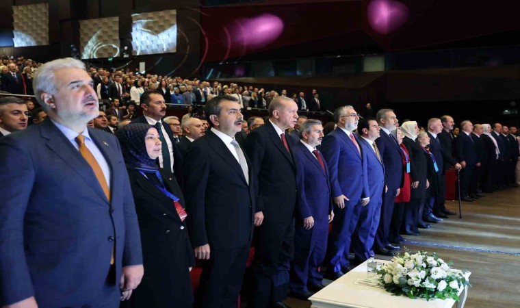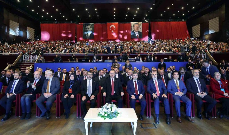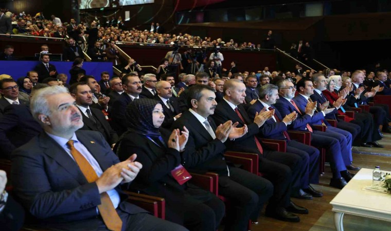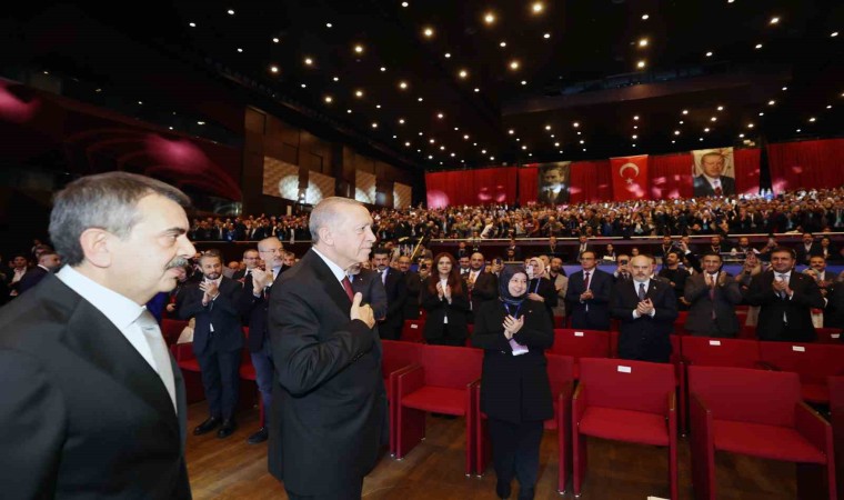 Bütçeden her zaman aslan payının eğitime verdiklerini belirten Cumhurbaşkanı Erdoğan, "Türkiye’nin ekonomik ve siyasi şartları ne olursa olsun eğitim öğretimin ikinci plana itilmesine müsaade etmedik. Hükümetlerimiz döneminde hazırlanan tüm bütçelerde aslan payını daima eğitim öğretime ayırdık. 2002 yılında toplam eğitim öğretim bütçemiz 3 milyar lirayken bugün ne oldu biliyor musunuz? Bugün bu miktar 652 milyar liraya çıkmıştır. Şu an kamuda görev yapan öğretmenlerin yüzde 80’i bizim iktidarlarımız döneminde atanmıştır. Her yıl ortalama 40 bin öğretmen ataması gerçekleştirdik. Üzerinde hassasiyetle durduğumuz bir konu öğretmen maaşları ve özlük hakları ile ilgili iyileştirmelerdir. Dolar bazında 2002 yılında Kasım itibarıyla bir öğretmen, ek ders hariç, 292 dolar kazanırken, bugün dolar bazında bunun yaklaşık 3 katı maaş alıyor” şeklinde konuştu.