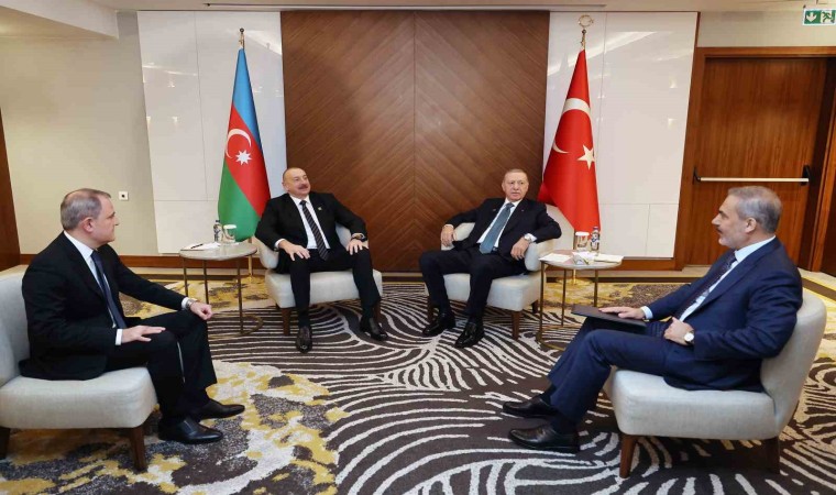 Cumhurbaşkanı Recep Tayyip Erdoğan, Türk Devletleri Teşkilatı (TDT) Devlet Başkanları Konseyi 11. Zirvesi’ne katılmak üzere bulunduğu Kırgızistan’ın başkenti Bişkek’te temaslarını sürdürüyor. Cumhurbaşkanı Erdoğan, Azerbaycan Cumhurbaşkanı İlham Aliyev ile bir araya geldi. Görüşmede Dışişleri Bakanı Hakan Fidan ile Azerbaycan Dışişleri Bakanı Ceyhun Bayramov da hazır bulundu.