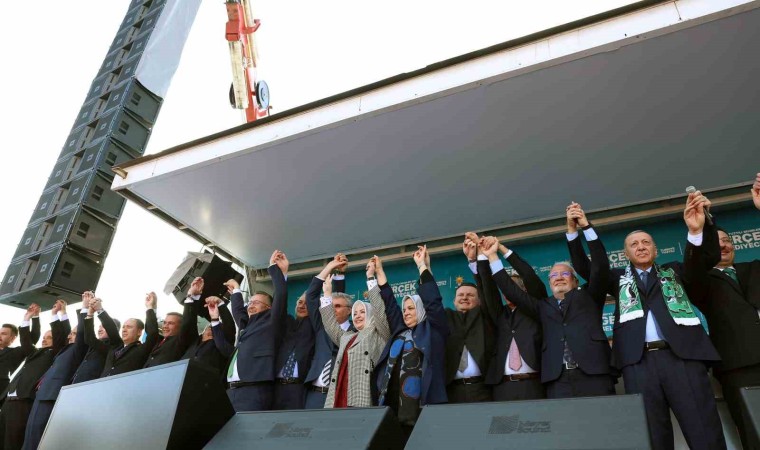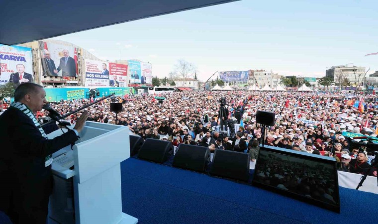 Cumhurbaşkanı Recep Tayyip Erdoğan, 31 Mart mahalli idareler seçimleri öncesinde miting programlarını sürdürüyor. Bu çerçevede Cumhurbaşkanı Erdoğan’ın bugünkü durağı Sakarya oldu. Erdoğan, partisinin düzenlediği mitinge katılmak üzere Sakarya Demokrasi Meydanı’na geldi. 60 bin kişinin bulunduğu meydanda partililere hitap eden Erdoğan, “Sakarya diğer alanlarda olduğu gibi bu mücadelede de ülkemizin önde gelen şehirleri arasındaki yerini aldı. Savunma sanayiinde sürekli yükselttiğimiz hedeflerimiz doğrultusunda azim ve kararlılıkla çalışmayı sürdürüyoruz. Yeter ki şu dört ilkeye sıkı sıkıya sahip çıkmaya devam edelim. Tek millet, tek bayrak, tek vatan, tek devlet. Bir olacağız, iri olacağız, diri olacağız, kardeş olacağız, hep beraber Türkiye olacağız. Bu irade 85 milyonuyla milletimizle yaşadıkça Allah’ın izniyle Türkiye Yüzyılı’nın doğuşunun önünü kimse kesemeyecektir. Türkiye bugün bölgesel ve küresel bir güç hedefine sahipse gerisinde son 21 yılda ülkemize kazandırdığımız eser ve hizmet alt yapısı var. Ülkemizin her şehri her karış toprağı bu yatırımlardan istifade etmiştir” diye konuştu.