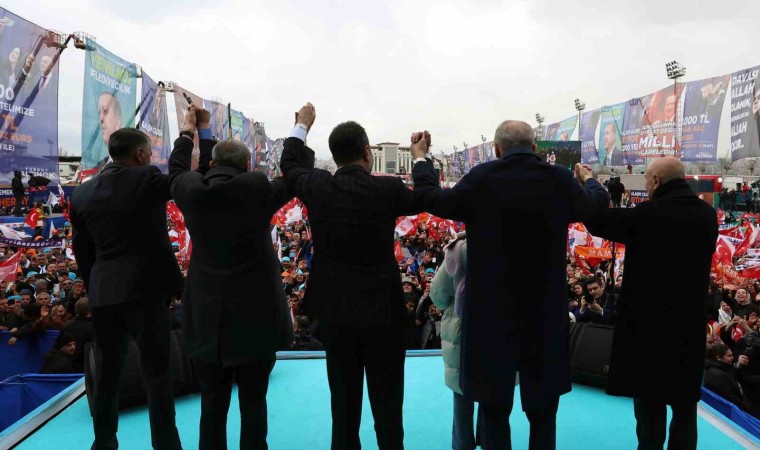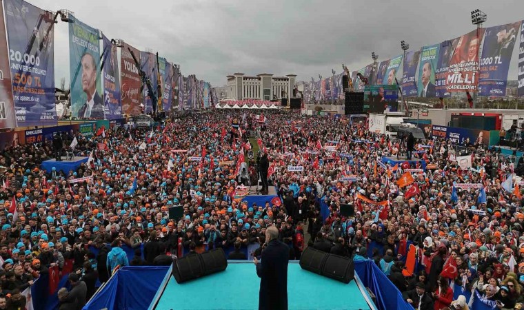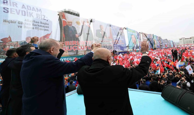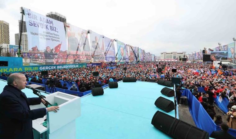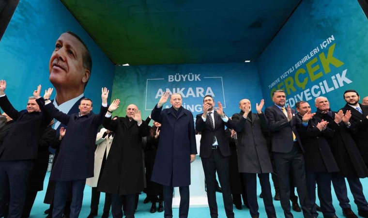 Ankara’ya metrolardan otoyollara, millet bahçelerinden, kentsel dönüşüm projelerine kadar pek çok eseri hizmete açtıklarını belirten Erdoğan, “Bu işin mahalli idareler ayağını da sağlam tutalım ki verdiğimiz emek ettiğimiz tahsis kaynak boşa gitmesin. Ankara’yı taşlarına, dar sokaklarına bakıp gözyaşlarımızı silerek başkent yapmış olabiliriz. Ama Ankara’yı aynı standartlara mahkum etmeye çalışanların vizyonsuzluğuna rıza göstermek zorunda değiliz. Nüfusu pek çok ülkeden fazla Ankara’mız her şeyin en iyisine en modernine layıktır. Biz Ankara’yı altyapısıyla üstyapısıyla şehir içindeki, kırsaldaki mahalleleriyle Türkiye Yüzyılı’na hazırlamayı vadediyoruz. Başkentimizi içinde oturanlarının ve çalışanlarının huzurla, işte benim şehrim diyeceği konuma getirmek arzusundayız. Sadece bu değil Ankara buraya gelen ve gören herkesin hayranlık duyacağı bir şehir olmalıdır, bu potansiyele de ziyadesiyle sahiptir. Caddeleriyle, parklarıyla, ulaşımıyla, altyapısıyla, sosyal ve kültürel donatılarıyla hep birlikte gurur duyacağımız bir Ankara’nın peşindeyiz. Çok mu şey istiyoruz? Hayır. Hepsi mümkün. Bölgesinin ve dünyanın yükselen yıldızı Türkiye’ye yakışır bir başkent için 31 Mart’ta her şey ayağınıza geliyor” açıklamalarında bulundu.