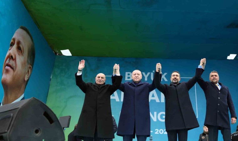 Cumhurbaşkanı Erdoğan, konuşmasının ardından Cumhur İttifakı’nın Ankara Büyükşehir Belediye Başkan adayı Turgut Altınok ve Cumhur İttifakı’nın ilçe belediye başkanlarıyla vatandaşları selamladı.