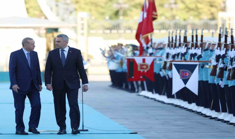 Erdoğan ve Nehammer’in tören alanındaki yerlerini almalarının ardından, 21 pare top atışı eşliğinde iki ülkenin milli marşları çalındı. Nehammer, Muhafız Alayı Tören Kıtası’nı ’Merhaba Asker’ diyerek selamladı. Törende, tarihte kurulan 16 Türk Devletini temsil eden bayraklar ve askerler de yer aldı.