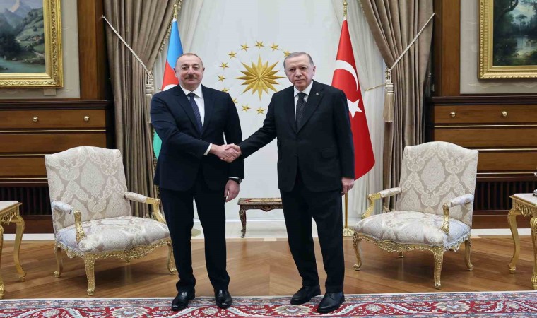 Heyetlerini birbirine takdim eden Erdoğan ve Aliyev, merdivenlerde Türkiye ve Azerbaycan bayrakları önünde gazetecilere poz verdi. Baş başa görüşmeye geçen Erdoğan ve Aliyev, heyetler arası gerçekleştirecekleri görüşmenin ardından ortak basın toplantısı düzenleyecek.