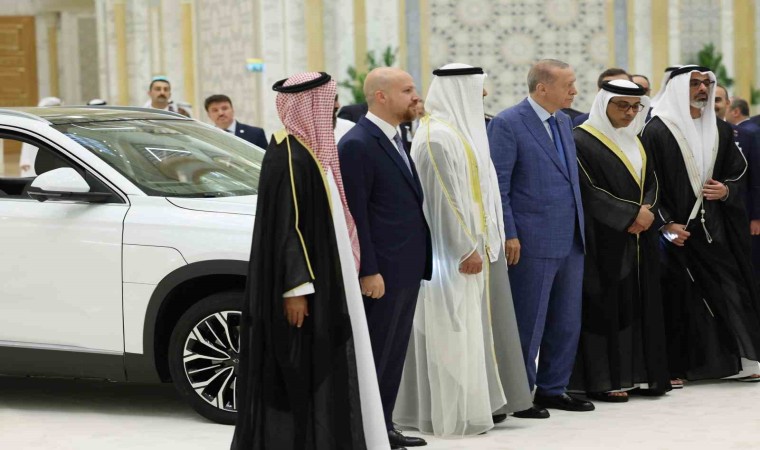Cumhurbaşkanı Recep Tayyip Erdoğan, Körfez ülkeleri turunun son durağı Birleşik Arap Emirlikleri’nde (BAE) temasları sırasında BAE Devlet Başkanı Şeyh Muhammed Bin Zayed Al Nahyan’a TOGG hediye etti.