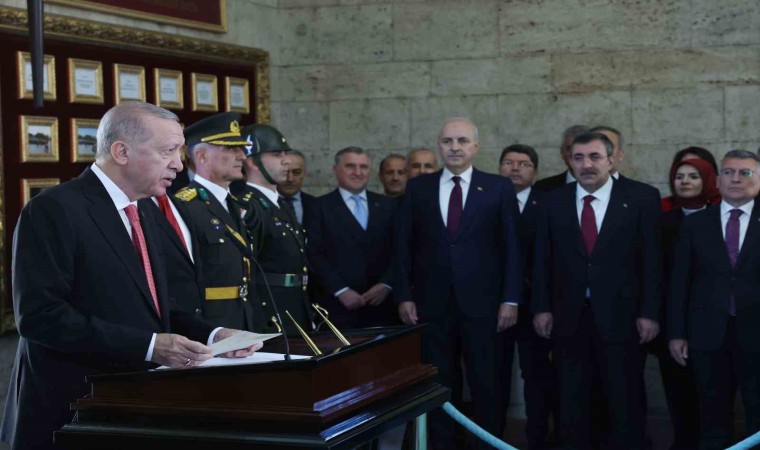 Daha sonra Erdoğan ve beraberindekiler, Misak-ı Milli Kulesi’ne geçti. Cumhurbaşkanı Erdoğan, burada Anıtkabir Özel Defteri’ne şunları yazdı: