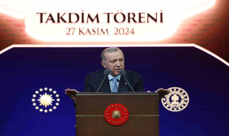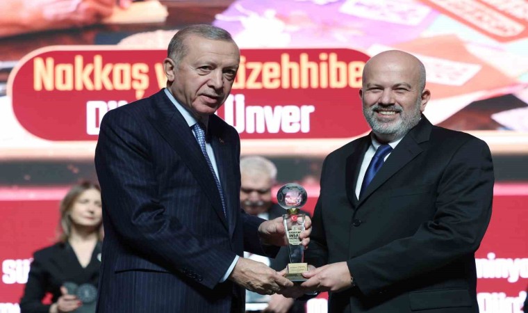 Sanata ve zanaata emek verenlere hitap eden Cumhurbaşkanı Erdoğan, "Sizler kültürel bakımdan geçmişin hatalarıyla birlikte küresel olarak da çok yönlü bir kuşatma altında olduğumuz bu günlerde kültür mirasımızın devam etmesi, yaşatılması noktasında çok hayati roller üstlenmektesiniz. Aşkla, tutkuyla, yüksek bir sorumluluk bilinciyle icra ettiğinize inandığım sanat faaliyetlerinizle sizler tüm kalbimle ifade etmek isterim ki bizim milli kültürümüzü yeşerten hayat pınarlarımızsınız, Rabbim ortaya koyduğunuz tüm eserleri kalıcı, müessir ve bereketli kılsın. Gelecek nesillere daha güçlü ve daha zengin bir kültür hazinesi bırakmayı bizlere nasip eylesin diyorum Bu düşüncelerle sözlerime son verirken ödüllerini tevdi edeceğimiz kurumlarımızı ustalarımızı, icracılarımızı hattat, nakkaş ve sanatkarlarımızı bir kez daha canı gönülden tebrik ediyorum” diye konuştu.