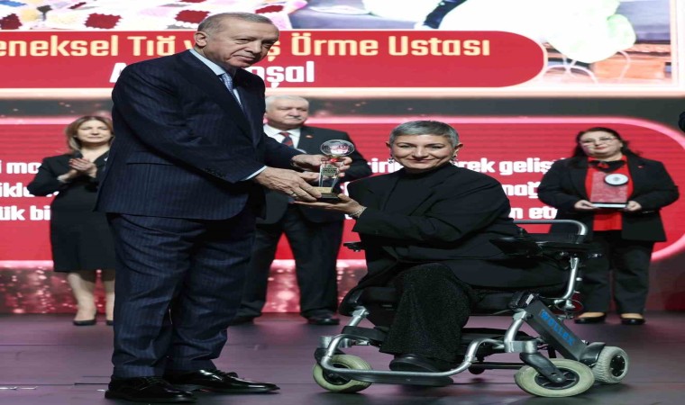 Hadim bezi dokuma ustası Müjgan Akdemir, ödülünü Cumhurbaşkanı Erdoğan’ın elinden alırken, "Ey Recep Tayyip Erdoğan, 15 Temmuz darbesinde ben çok ağladım vatan gidiyor diye. O anda seni verdi, Allah bize hediye" ifadelerini kullanarak, şiir okudu.