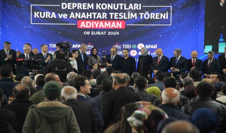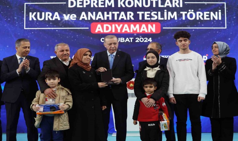 Cumhurbaşkanı Recep Tayyip Erdoğan, 2 bin 798 afet konutunun kura çekimi ve miting için Adıyaman’a geldi. Adıyaman Üniversitesi kapalı spor salonunda gerçekleştirilen kura çekimi programında konuşan Cumhurbaşkanı Erdoğan, "Şu anda kuralar çekildi. Konutlarımızın hak sahiplerine hayırlı olmasını diliyorum. 6 Şubat depremlerinde Adıyaman en çok yara alan şehirlerden biridir. Depremde Adıyaman’ımızda 8 bin 561 insanımız hayatını kaybetti. Yıkılan 6 binin üzerindeki binaya ilave olarak acil yıkılacak durumda 8 binin üzerinde ağır hasarlı olarak da 19 binin üzerinde bina vardır. Adıyaman’da yaklaşık 39 bin konut, 3 bin 400’ye yakın iş yeri ve 3 bine yakın ahır olmak üzere 45 bin 305 hak sahibi belirlendi. Bugün 2 bin 798 konutu teslim ediyoruz. Konutlarımızın hak sahiplerine hayırlı olmasını diliyorum. Halen inşaatı süren 32 bin konutumuzun yıl sonuna kadar peyderpey teslim edeceğiz. Barınma sorununu çözmek için pek çok adım attık. Adıyaman’a acil barınma ihtiyacını karşılamak üzere 91 binin üzerinde çadır gönderdik. 35 bine yakın konteyner kurarak buralarda 118 bin vatandaşımıza hizmet verdik. Toplam 1.2 milyar lira kaynak kullanarak 27 bin 609 haneye kira yardımı yaptık. Şimdi kalıcı konutlarla yeni bir safhaya geçtik. Tabi sadece konutlar yapmakla şehirlerimizin cadde ve meydanlarını yeniden düzenlemekle kalmıyoruz aynı zamanda şehirlerimizi Türkiye yüzyılına hazırlayacak temel alt yapıyı ve büyük yatırımları da hayata geçiriyoruz. Savunma sanayi yatırımlarını deprem bölgesi şehirlerimize yönlendirmek için bir iskan ve istihdam projesi başlattık. Adıyaman’ımıza savunma sanayi şirketleri ile üretim tesisi kuruyoruz. Yıl sonuna doğru faaliyete geçecek. Özel sektörümüzün şehre ilgisi artarak sürüyor. Mayıs seçimlerinde gençlerimizi desteklemek için bir fon kurma sözü vermiştik. Önceliğimiz kadın ve gençlerimiz olacak. Projelerle Adıyaman ve tüm deprem şehirlerini eskisinden daha iyi hale getireceğiz. Böylesine büyük bir felaketin altından bu kadar kısa sürede kalkabilecek bir ülke yoktur” dedi.