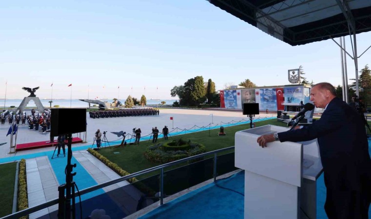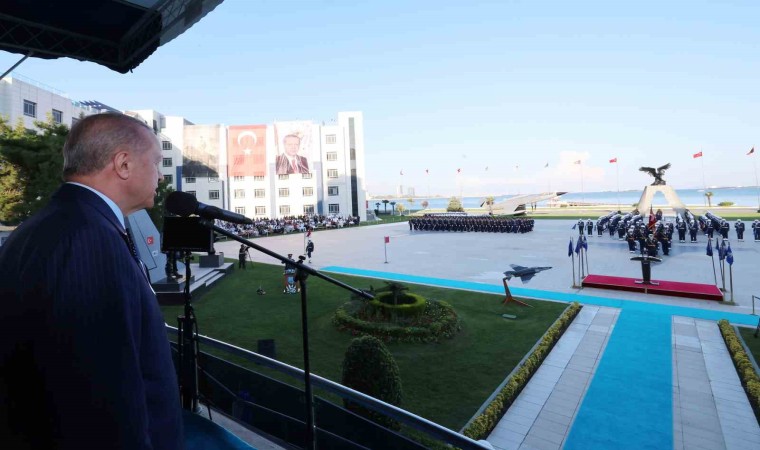Cumhurbaşkanı Erdoğan mezun öğrencilere hitap ederek, “Burada Hava Harp Okulu’nda modern, kaliteli, çok yönlü bir eğitim aldınız. Ordumuzu çok daha ileri seviyelere taşıyacağınıza yürekten inanıyorum. Meslek hayatınızın farklı kademelerinde, vatanımızın farklı köşelerinde görev yaparken şu hususları unutmayınız; sizler bu milletin, bu ülkenin göz bebeği olan bir kurumun mensuplarısınız. Üzerinizdeki emanetin ne derece şerefli olduğunu sizler zaten biliyorsunuz. Kendinizi geliştirmeye lütfen devam edin. Milletimizi ayakta tutan inanç ve medeniyet değerlerine sıkı sıkı sarılın. Siz genç teğmenlerimize sonuna kadar güveniyorum. Ailenize inanıyorum ki layık olacaksınız. Aileleriniz sizleri Harp Okulları’na gönderirken çok büyük bir inanç ile gönderdiler” dedi.