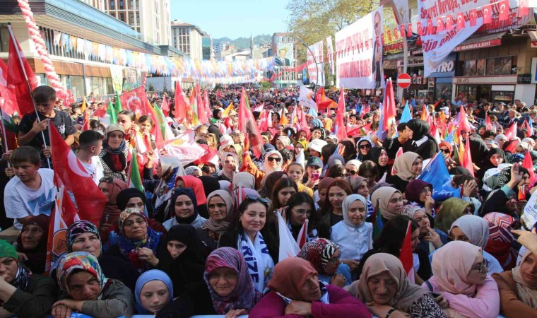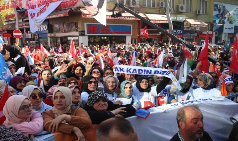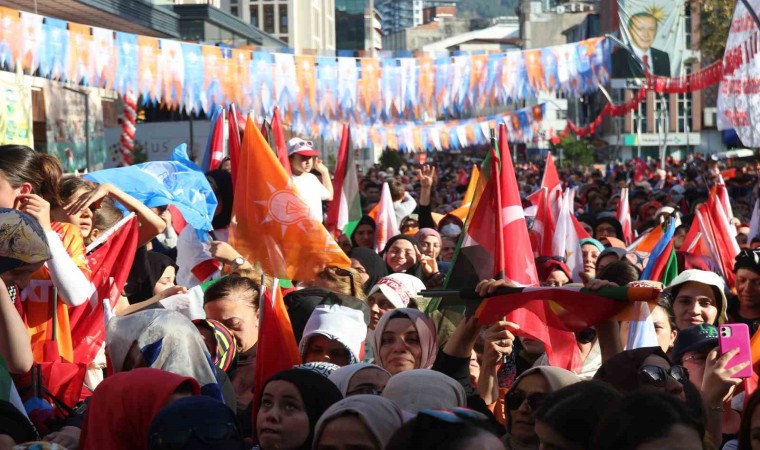 Törende 40 bin kişiye seslenen Erdoğan, yaklaşık 6 aylık bir aranın ardından bir kez daha Rize’de olmanın mutluluğunu yaşadığını söyledi. “Rize’nin baharı ayrı bir güzel sonbaharı ayrı bir güzel” diyen Erdoğan, “En güzeli de Rizeli uşakların her yerde hissettiğimiz vefası kadirşinaslığı, aşkı, sevdasıdır. Ömrünü davasına, ülkesine, milletine ve elbette hemşehrilerine hizmet yolunu adamış bir kardeşinizim. 20’li yaşlarda milletine siyaset yoluyla hizmet etmek için gençlik kollarında görev üstlendim. 30 yaşında Beyoğlu ilçe başkanı ve belediye başkanı olarak İstanbul’un doğup büyüdüğüm yerinde hizmete talip oldum. 40 yaşında büyükşehir belediye başkanı seçilerek çöp, çukur, çamur içerisindeki İstanbulumuzu çöpten, çukurdan, çamurdan kurtararak hamdolsun bugünkü İstanbul’un temellerini attık. 50 yaşında başbakan olarak ülkemize hizmet ettim. 60 yaşında milletimizin takdiri ile seçimle göreve gelen ilk cumhurbaşkanı olma şerefine eriştim. Şuanda 70 yaşıma merdiven dayadığım bugün mayasını Rize’den aldığım aşkla, şevkle, azimle, tecrübe ile ülkeme ve milletime hizmet mücadelemi sürdürüyorum. Neredeyse yarım asrı bulan yolculuğumun her safhasında Allah’tan başka güvenecek dal, milletimden başka yaslanacak gövde aramadım. Hamdolsun girdiğim her mücadelede Rabbimin yardımını da milletimin desteğini de yanımda buldum. Bu sayede yolumu kesmek için kurulan her tuzağın bozulduğunu her engelin kalktığını her zorluğun kolaylığa dönüştüğünü gördüm. Elde ettiğimiz her başarının gerisinde milletimin hayır duasının olduğunu bilerek bir sonraki safhaya geçtik. Rize’de başlayıp İstanbul’da dal budak saran ardından Türkiye’nin 81 vilayetine uzanan oradan Balkanlar’dan Kafkaslar’a dost ve kardeş coğrafyalara yayılan ve nihayetinde tüm dünyayı kucaklayan bir serencamın hikayesini hep beraber yazdık” diye konuştu.