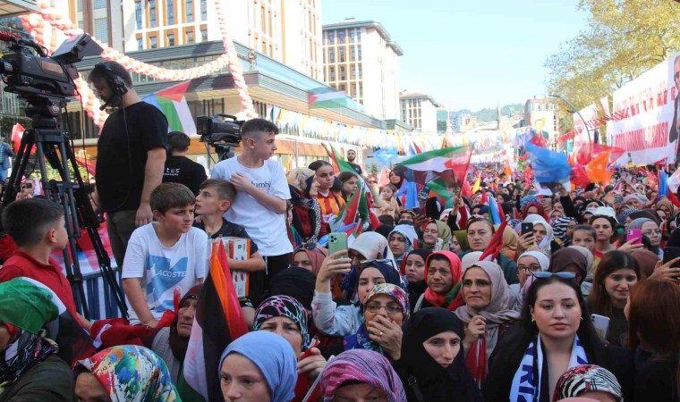 “Ülkemizin içinde bulunduğu çevre başta olmak üzere dünyada yaşananları olup bitenleri görüyorsunuz” diyen Erdoğan, “Adeta bir ateş çemberinin ortasındayız. Hamdolsun bu ateşin ülkemize zarar vermesini önleyecek güce de imkana da dirayete de tecrübeye de sahibiz. Karadeniz’e barış gelecekse emin olun bizimle gelecek. Suriye ve Irak sınırlarımızın bu ülkedeki kardeşlerimizin istikrarıyla güvende kalmasını biz sağlayacağız. Balkanlar’da, Kafkaslar’da huzur ve güveni kalıcı şekilde tesisini biz temin edeceğiz. Kuzey Afrika’dan Güney Asya’ya dostlarımızın ve kardeşlerimizin yaşadığı her yerde kalplerin ve gözlerin aradığı o beklenen biz olacağız. Filistinli kardeşlerimizin İsrail zulmünden kurtulması Gazze’de tüm dünyanın gözleri önünde işlenen katliamların durdurulması bizim boynumuzun borcumuzdur. Filistin topraklarının dört bir yanında çocukları, anneleri, masumları öldüren katillerin mazlumların malını çalan hırsızların yakasına yapışmak bizim insani vazifemizdir. Bu ahlaksız, vicdansız, alçakça katliamı yapanları destekleyenlerin yüzlerine gördüğümüz her yerde suçlarını haykırmakta tarihe karşı sorumluluğumuzun bir gereğidir. İlk kıblemiz Mescid-i Aksa’yı içinde barındıran Kudüs-ü Şerif diğer inançların mensuplarının da haklarını gözetecek şekilde mahrumiyetini korumak onların mahremiyetini korumak manevi görevlerimiz arasındadır. Şundan emin olunuz ki biz Filistin meselesinde Gazze’de yaşananlar konusunda gözükenden çok daha fazlasını yapıyoruz. Yapmayı da sürdüreceğiz. Gazze’deki kardeşlerimizi asla sahipsiz çaresiz ve tek başlarına bırakmıyoruz, bırakmayacağız. İçimizdeki kimi gafiller bilmese de Gazze’yi ve Filistinli kardeşlerimiz bunu çok iyi biliyor” ifadelerini kullandı.