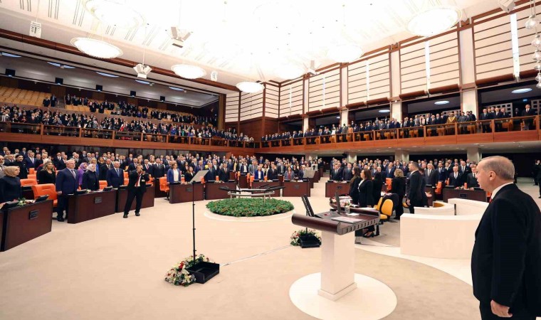 Mecliste tartışarak, uzlaşarak ve neticede Türkiye ortak paydasında buluşarak başarabileceklerini ifade eden Erdoğan, “Cumhuriyetimizin 100. yılına kavuşmanın haklı gururunu yaşadığımız 2023 senesini ülkemiz, milletimiz ve demokrasimiz açısından yeni bir dönemin müjdecisi haline getirmek bizlerin elindedir. Burada beraber konuşarak, tartışarak, uzlaşarak ve neticede Türkiye ortak paydasında buluşarak başarabiliriz. Demokrasiyi diğer yönetim tarzlarına göre üstün kılan en önemli vasfı, toplumsal müşterekleri artırmaya imkan tanımasıdır. Demokrasiyi güçlendirmek, bu bakımdan milletin birliğini bütünlüğünü bir arada barış ve huzur içinde yaşama iradesini de güçlendirmek demektir. Hakarete, iftiraya ve yalana varmadığı sürece her türlü tenkide milletimize faydası dokunacak her türlü teklife açık olduğumuzu tekrar vurgulamak istiyorum. Biz her hal ve şart altında doğru bildiklerimizi ülkemizin hayrına olduğuna inandığımız hususları açık yüreklilikle dillendirmeye devam edeceğiz. Elbette haksızlıklar karşısında susmayacağız. Milletin sandıkta bizlere emanet ettiği muazzez iradesine kesinlikle leke sürdürmeyeceğiz. Vesayetin her türlüsüne karşı bugüne kadar olduğu gibi bundan sonra göğsümüzü siper edeceğiz. Türkiye’yi ve Türk milletinin çıkarlarını küresel arenada cesaretle savunurken hiç kimseden çekinmeyeceğiz. Ama istiklal ve istikbalimiz adına verdiğimiz bu mücadeleyi mümkün olan en geniş zeminde ve mutabakatla yürütmenin çabası içinde olacağız. Şu meclis çatısı altında ülkemize hizmet gayesiyle çalışan siyasi partilerin 85 milyonunun her bir ferdinin birikiminden istifade etmeye gayret edeceğiz. Meclisimizin yeni yasama yılının yeni bir iş birliği ruhuna kapı aralamasını ümit ediyorum. Rabbim yar ve yardımcımız olsun diyorum. Bu duygularla bir kez daha Türkiye Büyük Millet Meclisimizin 28. Dönem ikinci yasama yılının hayırlı olmasını diliyor, milletvekillerimize yeni yasama yılında Mevla’dan başarılar temenni ediyorum” dedi.