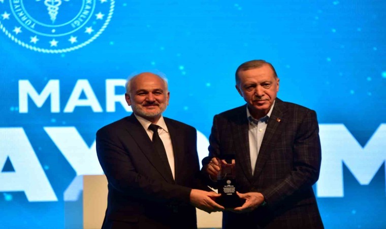 "Türkiye kimi çevrelerin art niyetli eleştirilerine rağmen 2002’den bu yana sağlık alt yapısına yaptığı devasa yatırımların karşılığını korona salgını döneminde fazlasıyla almıştır" diyen Cumhurbaşkanı Erdoğan, "Sizlerin de olağanüstü gayretleriyle son asrın en büyük sağlık krizini başarıyla yönettik. Bize örnek gösterilen Batılı ülkelerin bile baş etmekte aciz kaldığı bu zor dönemi hamdolsun biz devletimizi vatandaşına karşı mahcup edecek hiçbir duruma mahal vermeden suhuletle geride bıraktık. Salgından sonra geçen yıl 6 Şubat’ta yaşadığımız deprem felaketinde de sağlık alt yapımızın gücüne şahitlik ettik. Depreme dayanıklı şekilde yeniden inşa ettiğimiz veya şehirlerimize sıfırdan kazandırdığımız sağlık tesislerimiz depremden sonra adeta elimiz ayağımız her şeyimiz oldu. Özellikle şehir hastanelerimiz hem salgınla hem de deprem felaketiyle mücadelenin sembolü haline geldi. Bugüne kadar toplamda 36 bin 300 yataklı 24 şehir hastanemizi hizmete açtık. İsraf denilen, ne gerek var denilerek engellenmeye çalışılan bu modern sağlık üsleri her iki süreçte de gerçekten kritik roller üstlendiler. Hastanelerimizden hizmet alan hasta yükümüzün dörtte birini şimdiden şehir hastanelerimiz yüklenmiş durumdadır. Her büyük şehrimizi bir şehir hastanesi ile buluşturmayı hedefliyoruz. Hali hazırda 14 adet şehir hastanemizin inşaatı devam ediyor. Planlama aşamasında da 3 şehir hastanemiz var. İnşallah bunları da tamamlayarak hizmete sunacağız" ifadelerini kullandı.