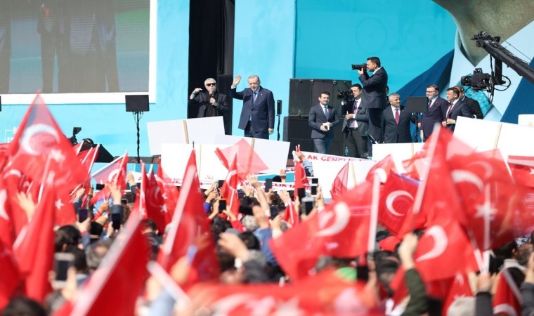 Cumhurbaşkanı Recep Tayyip Erdoğan, 31 Mart Yerel Seçimleri öncesi İzmir Gündoğdu Meydanı’nda ‘Büyük İzmir Mitingi’ gerçekleştirdi. Dev mitingde önemli mesajlar veren Erdoğan, sahneye Sanatçı Cengiz Kurtuoğlu ile çıkarak ‘Duyanlara Duymayanlara’ şarkısını söyledi. Binlerce vatandaşa seslenen Erdoğan, İzmir’e yapılan hizmetlerden bahsederek, “Kardeşlerim demir yollarında İzmir sınırları içindeki konvansiyonel hattı yeniledik. Aliağa-Selçuk arasındaki İZBAN’ı, Kemalpaşa Organize Sanayi Bölgesi’ne demir yolu bağlantı hattını bitirdik. İzmir, Ankara Yüksek Hızlı Tren hattının yapımına etaplar halinde devam ediyoruz. Halkapınar Otogar raylı sistem hattını ihale aşamasına getirdik. Adnan Menderes Havalimanı’nı baştan aşağı yenileyerek yolcu sayısını 5 katına çıkardık. 20 yıl önce Adnan Menderes Havalimanı’nın halini düşünün, neydi? Ama biz geldik ne oldu? Mordoğan, Eski Foça ve Güzelbahçe Yalı Balıkçı barınaklarını Sığacık, Çeşme ve Yeni Foça yat limanlarını tamamladık. Tarım ve Ormanda son 21 yılda şehrimize 38 baraj, 7 içme suyu tesisi, 44 sulama tesisi, 109 taşkın koruma tesisi, 8 gölet ve 8 yeraltı depolama tesisi yaptık. İzmir’de 94 bin dekar arazinin sulanmasına hizmet edecek olan 5 baraj daha inşa ediyoruz. Bitirdiğimiz sulama tesisleriyle 500 bin dekar araziyi sulamaya açtık. Çiftçilerimize yıllık 3 milyar 750 milyon lira zirai gelir artış sağladık. İnşaat safhasında yer alan 4 sulama tesisimizde 115 bin dekar araziyi daha sulayacağız. İzmirli çiftçilerimize bugüne kadar yaklaşık 64 milyar lira tutarında tarımsal hibe desteği verdik. Sanayi ve teknolojide 4 yeni organize sanayi bölgesi, 3 endüstri bölgesi, 4 teknopark kurduk. Dikili, Bayındır ve Kınık Sera Organize Tarım Bölgelerimizin yapımına devam ediyoruz. Bu 3 Sera Organize Tarım Bölgesi tamamlanıp faaliyete geçtiğinde çoğu kadın olmak üzere 8 bin kişiye ilave iş imkanı sağlayacak. İstihdamı desteklemek için İzmir’deki işverenlere 30 milyar lira prim teşviği verdik. Enerjide yaklaşık 1 milyon abonesi bulunan İzmir’de nüfusun yüzde 91’ine doğal gaz imkanı sunduk. Bu yıl Çeşme’ye ve 2026 yılında Karaburun’a da doğal gaz arzı planlıyoruz” ifadelerine yer verdi.