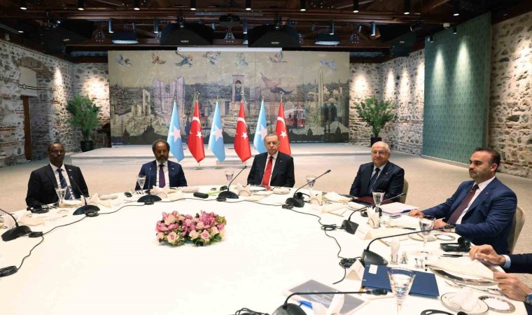 Cumhurbaşkanı Recep Tayyip Erdoğan, Somali Federal Cumhuriyeti Cumhurbaşkanı Hasan Şeyh Mahmud ile Cumhurbaşkanlığı Dolmabahçe Çalışma Ofisi’nde yaptığı 2 saatlik görüşmenin ardından ayrıldı.