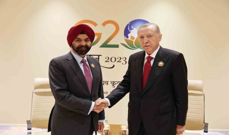 Cumhurbaşkanı Recep Tayyip Erdoğan, Hindistan’ın başkenti Yeni Delhi’deki Bharat Mandapam Uluslararası Fuar ve Kongre Merkezi’nde gerçekleştirilen G20 Liderler Zirvesi’nin ardından ikili görüşmelerini sürdürüyor. Cumhurbaşkanı Erdoğan, Dünya Bankası Başkanı Ajay Banga ile görüşme gerçekleştirdi. Erdoğan görüşmede Banga’yı yeni görevi dolayısıyla kutlarken, Türkiye’nin Dünya Bankası ile köklü ilişkilerinden ve "asrın felaketi" olarak nitelendirilen 6 Şubat depremleri sonrası bankanın desteğinden duyduğu memnuniyeti dile getirdi. Erdoğan ayrıca, Dünya Bankası Grubu’nun 17 milyar dolar büyüklüğündeki 3 yıllık Türkiye Fonu’nu 18 milyar dolar ilave ile 35 milyar dolara yükseltme kararını memnuniyetle karşıladıklarını belirtti. Yatırımların tamamının deprem bölgesinin yeniden inşası başta olmak üzere istihdam ve üretime yönelik uzun vadeli yatırımlara dönüşeceği ifade edilen görüşmede Erdoğan, Dünya Bankası ile yeni dönemde iş birliklerinin derinleşeceğine inandığını söyledi.