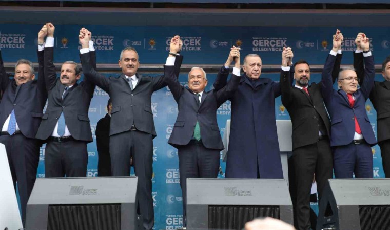 Erdoğan, şöyle devam etti: “Türkiye’nin 21 yılda nereden nereye geldiğini akıl ve vicdan sahibi herkes zaten görüyor, kabul ediyor. Sadece bu kadar da değil, bizimle vizyonda, programda, projede yarışacak bir rakip de tanımıyoruz. Seçimlerde karşımıza çıkan partilerin bir kısmının, bırakın ülkeye ve şehirlerimize katkıda bulunmayı, kendilerine bile hayrı yok. Mesela, herkesin saç saça, baş başa kavga halinde olduğu CHP’ye bakıp da başka bir hissiyata kapılmak mümkün mü? Yine ülkeye ve millete herhangi bir faydası olmayan partilerin bazıları da tüm stratejilerini kazanmak değil, kaybettirmek üzerine kurmuş durumdalar. Yahu senin bu ülkede tuğla üzerine tuğla koyma seviyesinde bile bir izin yoksa, milletin dertlerinden birine bile derman olacak projen veya teklifin yoksa, herhangi bir konuda geleceğe ışık tutacak fikir üretememişsen, birilerine kaybettirmekle eline ne geçecek? Bu kafanın sonu, kendini siyasetin mezat pazarında açık artırmaya çıkarmaktır”