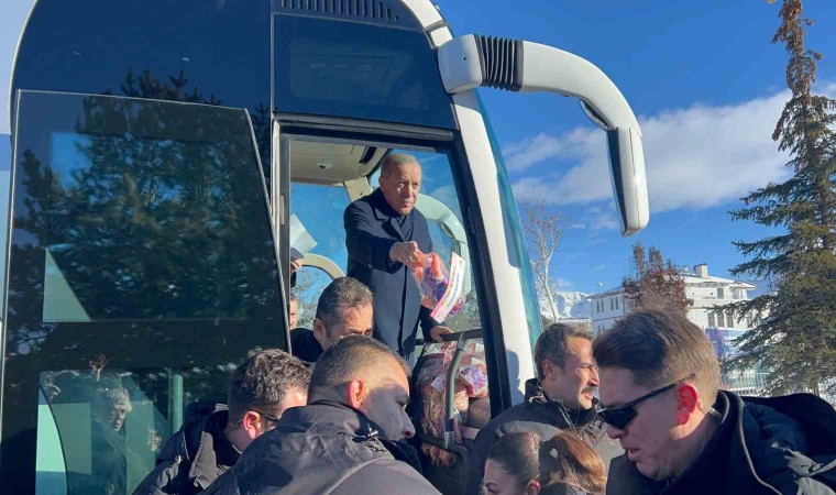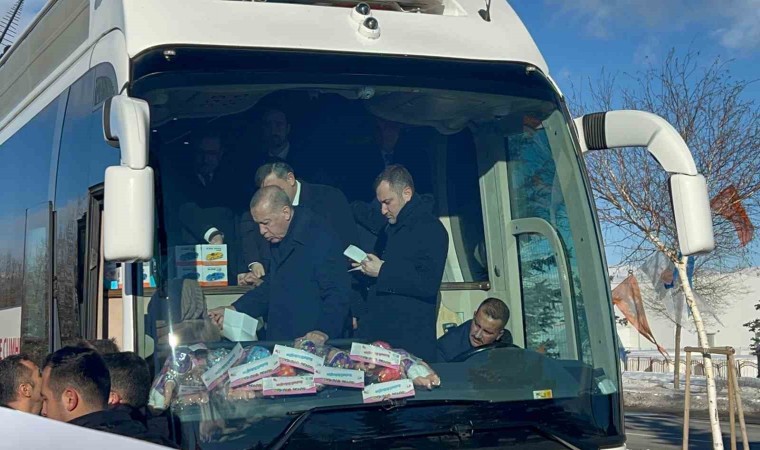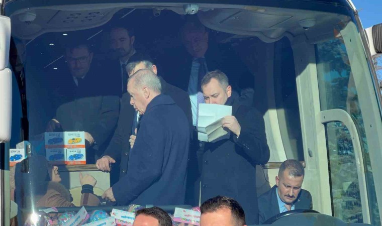 Cumhurbaşkanı Erdoğan, güzergah boyunca yol kenarında ve kavşaklarda kendisine sevgi gösterisinde bulunan vatandaşlara hediyeler verdi.