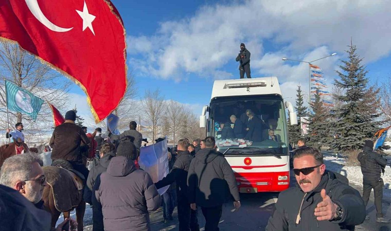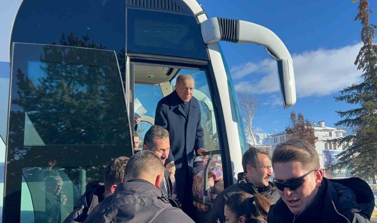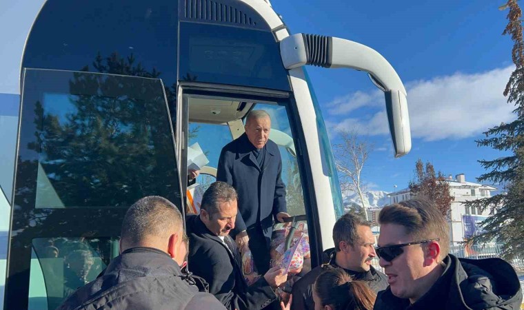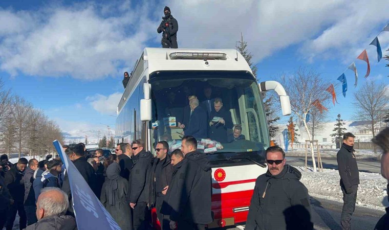 Erzurum Havalimanında vali, milletvekilleri, büyükşehir belediye başkanı ve ilçe belediye başkanı ile parti yöneticilerince karşılanan Cumhurbaşkanı Erdoğan buradan otobüs ile il kongresinin yapılacağı Buz Hokeyi Salonu’na hareket etti.