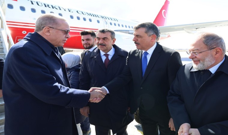 Cumhurbaşkanı Recep Tayyip Erdoğan’ı Erzurum Havaalanında Milli Eğitim Bakanı Yusuf Tekin, Vali Mustafa Çiftçi ve Sağlık Eski Bakanı Recep Akdağ karşıladı.