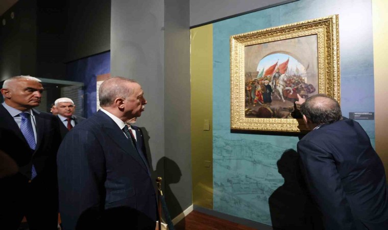Cumhurbaşkanı Recep Tayyip Erdoğan, İstanbul’un fethinin 571’inci yıl dönümü dolayısıyla Cumhurbaşkanlığı Millet Kütüphanesi’nde açılan Fatih Sultan Mehmet Sergisi’ni ziyaret etti. Sergi hakkında yetkililerden bilgi alan Cumhurbaşkanı Erdoğan’a Kültür ve Turizm Bakanı Mehmet Nuri Ersoy ile Cumhurbaşkanlığı İletişim Başkanı Fahrettin Altun da eşlik etti. Cumhurbaşkanı Erdoğan, daha sonra gençlerle sohbet ederek fotoğraf çektirdi.