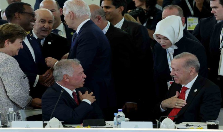 Cumhurbaşkanı Recep Tayyip Erdoğan, G7 Liderler Zirvesi çerçevesinde düzenlenen Afrika ve Akdeniz-Yapay Zekâ ve Enerji Konulu G7 Yüksek Düzeyli Oturumu’na katıldı. Cumhurbaşkanı Erdoğan oturum öncesinde ABD Başkanı Joe Biden ile sohbet etti. Oturum öncesinde yanına gelen Fransa Cumhurbaşkanı Emmanuel Macron ile de sohbet eden Erdoğan daha sonra Katoliklerin ruhani lideri Papa Francis, Brezilya Devlet Başkanı Lula da Silva, Cezayir Cumhurbaşkanı Abdülmecid Tebbun, Ürdün Kralı II. Abdullah ve Avrupa Konseyi Başkanı Charles Michel ile görüşmeler gerçekleştirdi. Erdoğan, Hindistan Başbakanı Narendra Modi ve Birleşik Arap Emirlikleri (BAE) Devlet Başkanı Muhammed Bin Zayed Al Nahyan ile ayaküstü konuştu.