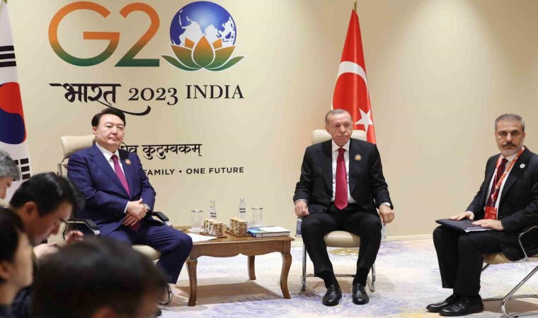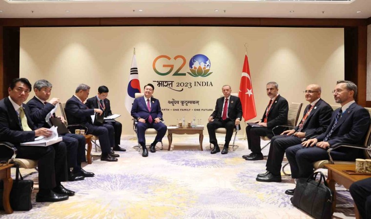 Cumhurbaşkanı Recep Tayyip Erdoğan, Hindistan’ın başkenti Yeni Delhi’deki Bharat Mandapam Uluslararası Fuar ve Kongre Merkezi’nde "Tek Dünya" temasıyla gerçekleştirilen G20 Liderler Zirvesi’nin ilk oturumunun ardından ikili görüşmelerini sürdürüyor. Cumhurbaşkanı Erdoğan, Güney Kore Devlet Başkanı Yoon Suk-Yeol ile bir araya geldi. Görüşmede, Türkiye-Güney Kore ikili ilişkileri ele alınırken, mevcut ilişkileri geliştirecek adımlar ile iki ülkeyi ilgilendiren bölgesel ve küresel meseleler hakkında da görüş alışverişinde bulunuldu.