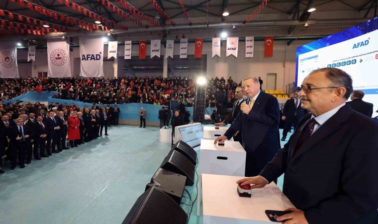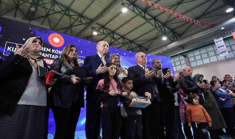 Burada konuşan Cumhurbaşkanı Erdoğan, sözlerine depremde hayatını kaybeden 53 binin üzerindeki vatandaşın her birine Allah’tan rahmet, yakınlarına baş sağlığı dileyerek başladı. Cumhurbaşkanı Erdoğan, depremin 11 il, 124 ilçe, 7 bine yakın köy ve mahallede ağır yıkıma yol açarken, 14 milyon vatandaşın afetten doğrudan etkilendiğini kaydederek, “Öyle ki depremde yıkılan 39 bine yakın binanın 26 bininde arama-kurtarma faaliyeti yürütülmesi gerekmiştir. Ayrıca 200 binden fazla ağır hasarlı bina ile karşılaşılmıştır. Deprem bölgesine 1 milyon çadır gönderilmiş, 215 binin üzerinde konteyner kurulmuş, 349 bin haneye kira yardımı yapılmış, taşınma ve destek ödemelerinde bulunulmuştur. Büyük felaketler ve büyük acılar aynı zamanda milletlerin birliğinin, beraberliğinin, kardeşliğinin, gücünün sınandığı dönüm noktalarıdır. Milletimiz bu acı ve bir o kadar da tarihi sınamayı başarıyla vermiştir. Asrın felaketini asrın dayanışmasına dönüştürerek o zor günlerin geride kalmasını temin ettik. Devletimiz tüm imkanlarıyla anında harekete geçerken Türkiye tek yürek olmuş depremzede kardeşlerinin yanına koşmuştur.