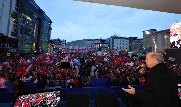 Hakkari’nin huzuruna, hepsi birbirinden kıymetli adaylarla çıktıklarını ifade eden Cumhurbaşkanı Erdoğan, “Şehrimizin kaynaklarını terör örgütlerine ve teröristlere aktarmadan sizler için kullanacak isimler belirledik. Hakkari Belediye Başkan Adayımız İsmet Ölmez, fakir fukarayı gözetmesi, ihtiyaç sahiplerinin elinden tutması ile bilinen bir kardeşimizdir. İsmet kardeşimiz, şehrimizin kalkınması ve gelişmesi için kendi imkanlarını da kullanacağına dair bize söz verdi. Seçilmesi halinde elbette biz de İsmet kardeşimizin yanında yer alacağız. Şimdi buradan soruyorum, hazır mıyız? Hakkari, 31 Mart’ta Türkiye Yüzyılı şehirleri için hazır mıyız? 31 Mart’ta Türkiye Yüzyılı şehirleri için kararlı mıyız? 31 Mart’ta gerçek belediyeciliği tercih ediyor muyuz? Bunun için seçim gününe kadar ana kademe, kadın kolları, gençler kapı kapı dolaşmaya var mıyız? Hakkari ile birlikte Türkiye haritasının tamamını Cumhur ittifakının renkleri ile boyamaya var mıyız? Allah sizlerden razı olsun” diye konuştu.