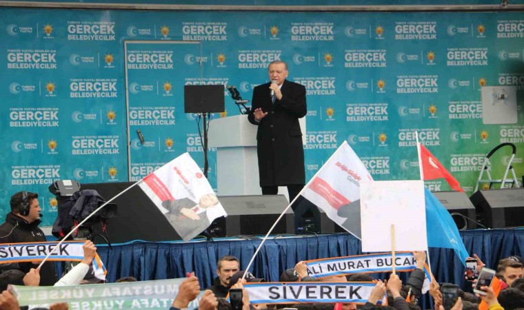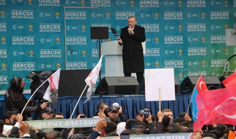 Cumhurbaşkanı Erdoğan, “Sizlerle birlikte olmaktan memnuniyet duyuyorum. Biz Şanlıurfa’yı en iyi biz biliriz onlarda bizi iyi bilir. Bizim aramazdaki aşkı sevdayı muhabbeti anlamak isteyenlerin gönül gözüyle bakması lazımdır. Gelip geçici gündemlerin heyecanı ile Şanlıurfa’ya bakan bunları göremez. Şanlıurfa bugün yine bir başka güzel, bir asır önce işgalci Fransızları buradan kovarak şanlı unvanı aldı. Bugünde sizlere şahsi hırsıyla hareket edenlere terör örgütüne sırtını dayayanlara ekmeden biçme peşinde olanlara küçük hesapları için şehrinin geleceğini tehlikeye atanlara mili iradenin arkasından dolanmak isteyen fırsatçılara geçit vermeyeceğinize inanıyorum. Bizim siyasetimiz, eser ve hizmet siyasetidir. Yatırım, program, proje, vizyonda bizimle yarışacak siyasi rakip tanımıyoruz. Bu kardeşiniz Türkiye’nin cumhurbaşkanı şimdi yerel yönetimlerde 31 Mart’ta yerel yönetimleri de cumhur ittifakına verdiğiniz zaman biz bir olacağız Şanlıurfa’yı yatırımlarla başka bir noktaya getireceğiz. Diğerlerinin böyle bir imkanı var mı. Biz milletimize asla yalan söylemedik. Söylediğimizi yapmak için gece gündüz gayret gösterdik. Bir dönem ülkemiz siyasetine damgasını vuran, onlar ne veriyorsa 5 katı benden zihniyetinin siyasetini hatırlıyorsunuz. Ülkemiz popülist siyasetçilerin ekonomide bıraktığı enkazı uzun yıllar toparlayamadı. Şimdi aynı zihniyeti yeniden hortlatmaya çalışanlar var” dedi.