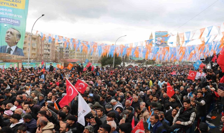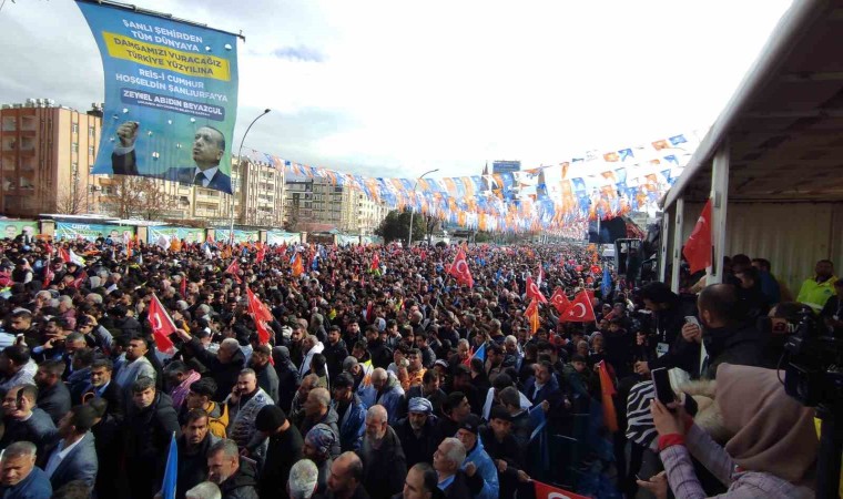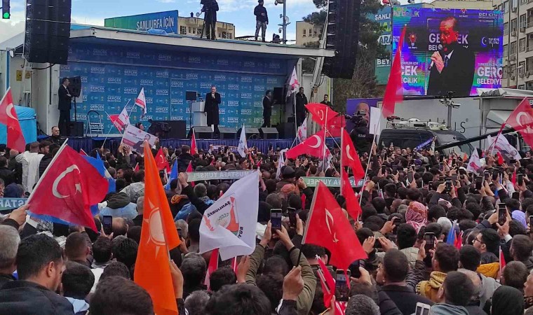 Cumhurbaşkanı Erdoğan, “Alanda şuanda 70 bin kişi var. Şanlıurfa’ya bu yakışır. Dimdik ayaktayız. Meydanlarda ve medyada esip gürleyenleri milletimize vaat ettikleri hiçbir şey yapmayacağı bellidir. Bunların amacı milletin elindekini de alıp götürmektir. En son 2019 seçimlerinde bunu gördük. Meydanlarda birçok söz verdiler ama bunlara yapmadılar. Hatta birçok şehri geriye götürdüler. Mesele söz vermek değil verdiği sözü yerine getirmektir. Ülkemizin milli gelirini 21 yılda 3 kat arttırmış bir yönetim olarak vatandaşımızın her derdi bizim derdimizdir. Her kesimden insanımızın sıkıntılarını çözecek kararlılığa biz sahibiz. 7 Nisanda Fenerbahçe Galatasaray maçını burada yapacağız. Çünkü Şanlıurfa’ya bu yakışır. Önümüzdeki seçimde şehirlerimizi emanet edeceğimiz belediye başkanlarımızı bu hususta belirledik. Ben size inanıyorum. 31 Mart akşamı Şanlıurfa’yı Ankara’dan takip edeceğim” şeklinde konuştu.