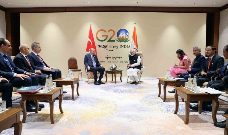Cumhurbaşkanı Recep Tayyip Erdoğan, Hindistan’ın dönem başkanlığında düzenlenen G20 Liderler Zirvesi kapsamında Hindistan Başbakanı Narendra Modi ile bir araya geldi. Erdoğan ve Modi arasındaki görüşmede, Türkiye - Hindistan arasındaki ilişkilerin tüm boyutlarıyla ele alındığı, ekonomik ilişkiler ile ikili ticaret hacmini artıracak projeler hakkında fikir alışverişi yapıldığı aktarılırken, her iki ülkeyi ilgilendiren güncel bölgesel ve uluslararası konuların değerlendirildiği kaydedildi.