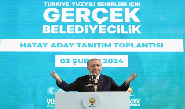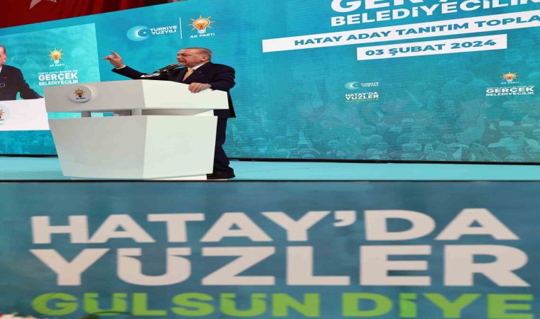 Cumhurbaşkanı ve AK Parti Genel Başkanı Recep Tayyip Erdoğan, Antakya Kapalı Spor Salonu’nda düzenlenen AK Parti Hatay İlçe Belediye Başkan Adayları Tanıtım Toplantısı’na katıldı. Burada konuşan Cumhurbaşkanı Erdoğan, “Hükümetimizin gündeminin değişmez ilk maddesi 6 Şubat depreminde yıkılan şehirlerimizin yeniden inşası ve ihyasıdır. Temmuz ayında meclisimizde kabul edilen ek bütçede deprem bölgesindeki şehirlerimizde kullanılmak üzere 762 milyar liralık kaynak ayırdık. Bu yıl ki bütçemizde de depremzede illerimizin yeniden ihyası için 1 trilyon liradan fazla kaynak tahsis ettik. Depremde en fazla zarar gören Hatay’ımız elbette ayrılan bu kaynaktan hak ettiği payı aldı almaya da devam edecek. Çünkü biz deprem turistleri gibi bölge illerimizi sadece oy sandığı ufukta belirince hatırlayanlardan değiliz. Biz depremzede kardeşlerimizi oy tercihlerine göre ayıran oy rengine göre hizmete ve hürmete layık görenlerden de değiliz. Biz sırf sandıktan istediği sonuç çıkmayınca derem mağdurlarını kaldıkları misafir harelerden kapı dışarı eden, yaptığı üç kuruş yardımı insanımızın başına kakan vicdansızlardan hiç değiliz" dedi.